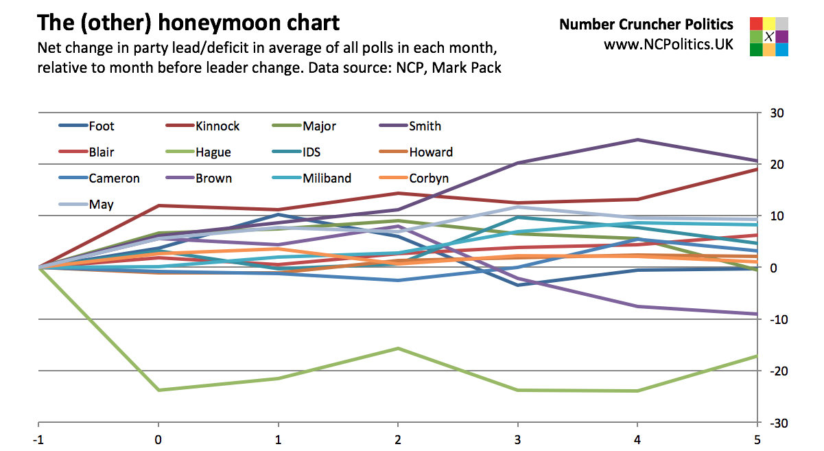 For changes of Prime Minister in mid-term, the honeymoon has tended to be two or three months. So whatever happens in terms of Brexit or domestic policy, it seems that the increased Conservative lead in recent months isn’t simply a “new leader” bounce, but something more fundamental.